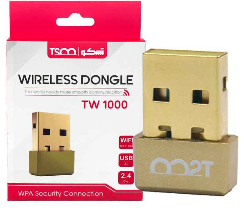 با فراگیر شدن تکنولوژی WIFI و وجود مودمهای بیسیم در اکثر خانهها و ادارات و محل کارها، نیاز به دریافتکنندهی این امواج بیش از پیش احساس میشود. تعداد بسیار زیادی از پیسیهای قدیمی و یا حتی جدید فاقد گیرندهی داخلی WIFI هستند و برای همین باید یا با کابل به اینترنت وصل شوند یا به گیرنده مجهز شوند. دانگلهای WIFI این مشکل را برطرف کردهاند. با وصل کردن دانگل WIFI به پورت USB دستگاه، کامپیوتر شما به راحتی به اینترنت وصل میشود و دیگر نیازی به باز کردن کیس کامپیوتر و قرار دادن قطعهی گیرندهی WIFI داخل دستگاه نخواهد بود. کارت شبکهی TW1000 محصولی از برند تسکو است که از طریق USB به رایانه متصل میشود. ابعاد این کارت شبکه مانند یک فلشمموری بند انگشتی است که به راحتی میتوان را به رایانه متصل کرد و از وجود شبکهی بیسیم لذت برد. از ویژگیهای بسیار خوب این محصول میتوان به پشتیبانی آن از سیستم عاملهای رایج و به خصوص نسخههای مختلف سیستم عامل ویندوز اشاره کرد. این کارت شبکه از استاندارد IEEE 802.11 b g n پشتیبانی میکند و برای بالابردن امنیت شبکه از تنظیمات امنیتی WEP WPA/WPA2 بهره میبرد.